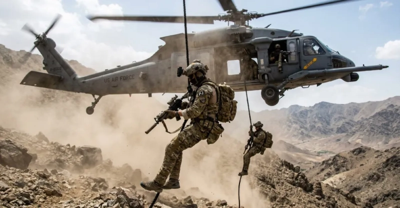 Zpravodajský portál TWZ k vybavení letky dodává, že obsahovala nejnovější záchranné vrtulníky HH-60W Jolly Green II či velitelské letouny HC-130J Combat King. Americké velení následně přistoupilo k bezprecedentnímu kroku. Deník The Wall Street Journal (WSJ) a britský The Guardian již dříve specifikovaly, že si americké síly vytvořily dočasnou základnu přímo na opuštěném letišti v Isfahánu. Právě sem dosedly obří infiltrační letouny, které další zdroje identifikovaly jako stroje MC-130J, a odtud vyrazilo komando SEALs pro samotného plukovníka.