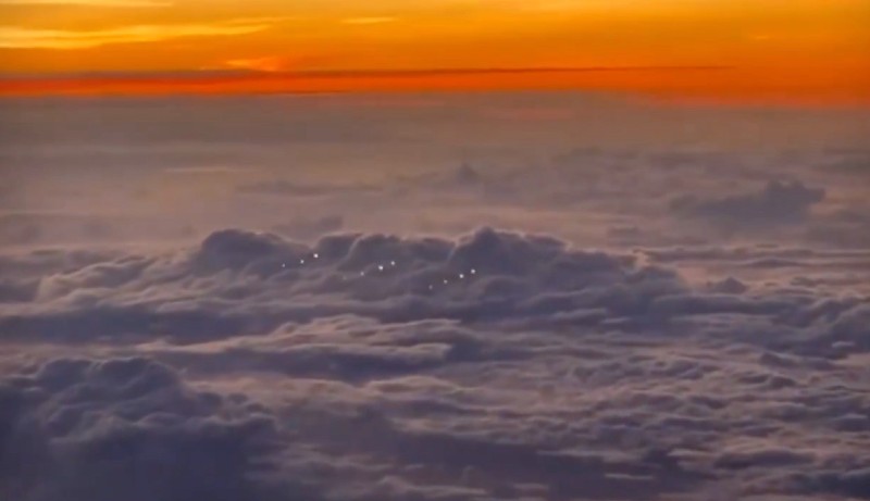 What are your thoughts on this? 9 lights visible in video, then it becomes 12 lights in formation, the closest object disappears, then 3 more objects reappear on the outside of the formation. Filmed at 39,000ft over the South China… pic.twitter.com/GOQoWSMqG3